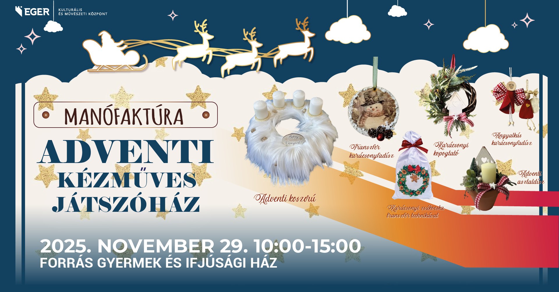 Készülj velünk az ünnepekre 2025. november 29-én a Forrás Gyermek és Ifjúsági Házban 10.00 és 15.00 óra között! Válassz a lehetőségek közül, amelyekhez az alapanyagokat mi biztosítjuk! Az ünnepi hangulat és a szárnyaló kreativitás garantált.